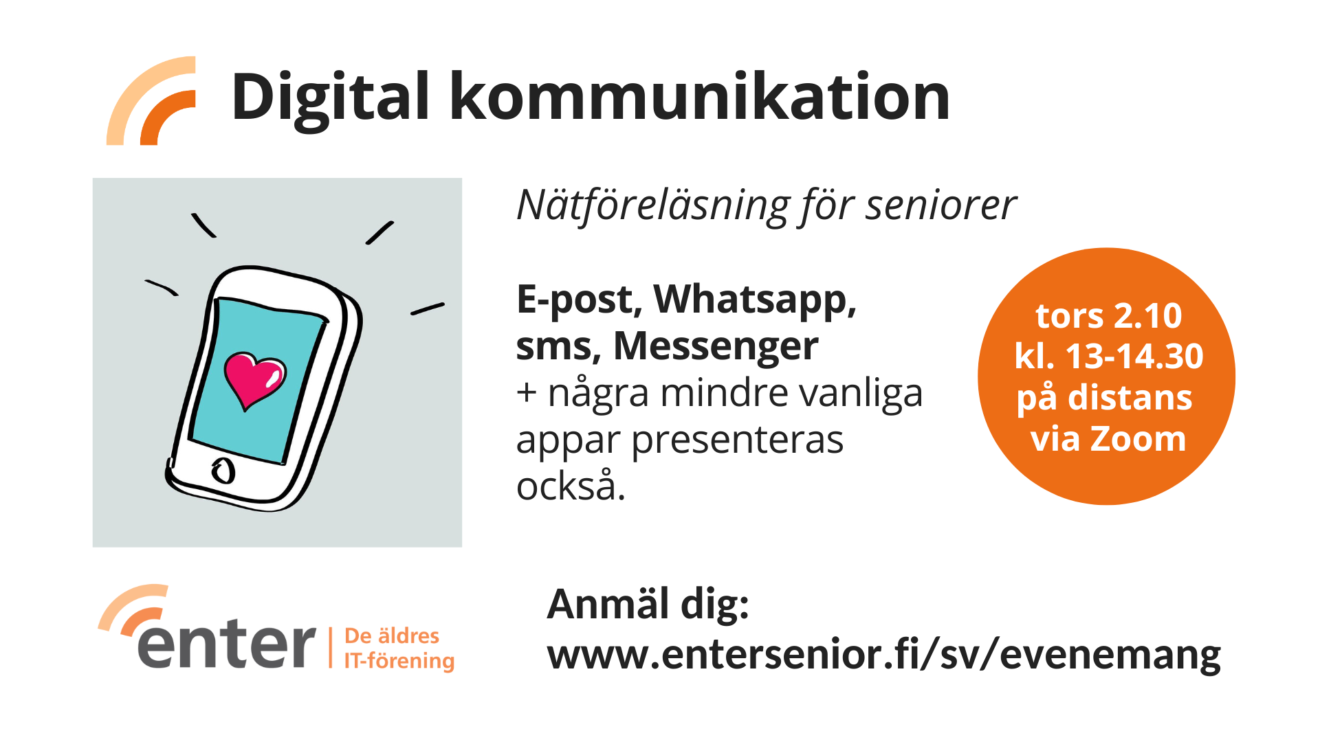 Välkommen med på distansföreläsningen om digital kommunikation med Anna Karin Jern! Föreläsningen hålls på plattformen Zoom.